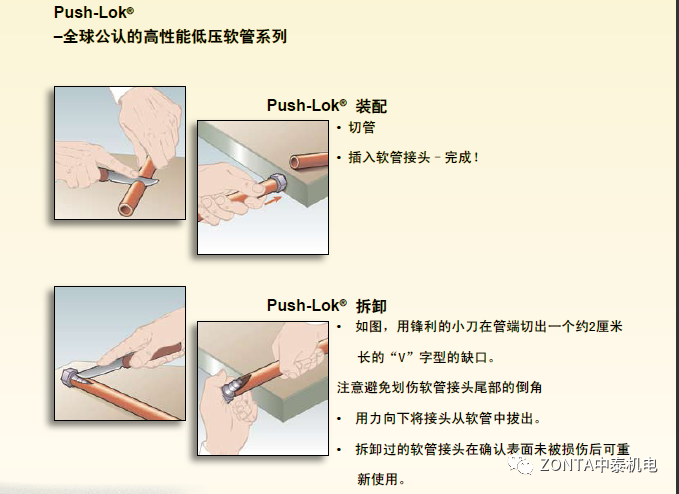 Push-Lok軟管的安裝與拆卸